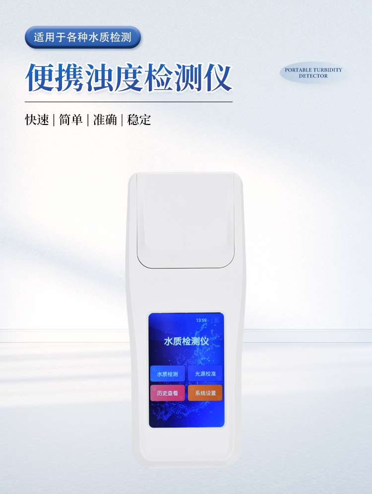 水质浊度快速测定仪用于测量悬浮于水或透明液体中不溶性颗粒物质所产生的光的散射程度,并能定量表征这些悬浮颗粒物质的含量.