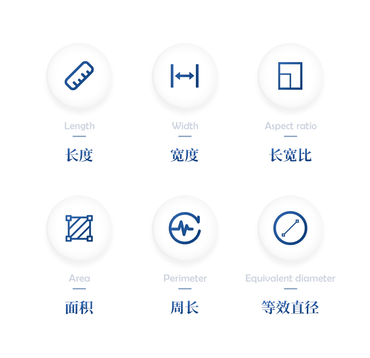 5、能自动测出各类粘连种粒的每粒粒形参数(长、宽、长宽比、面积、等效直径、周长等),能精准显示种粒外接矩形,并可自动排序输出,及可输出粒径分布图表。