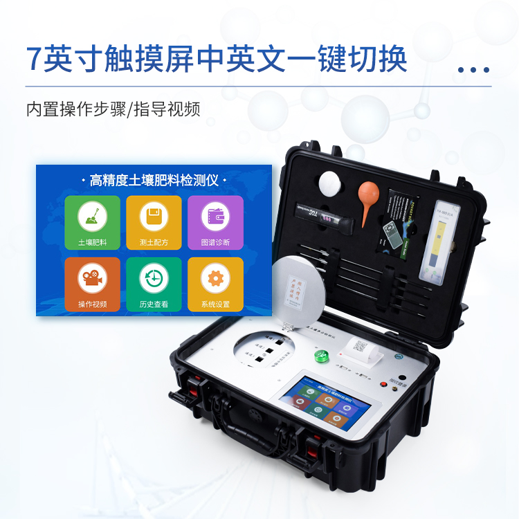 1 | 主仪器(内置打印机) | 1台 | 1 | 肥料养分试剂 (氮、磷、钾、有机质) | 1套 |