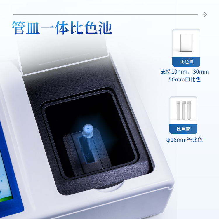 5、支持10mm、30mm、50mm皿比色和φ16mm管比色等比色方式,多元选择,确保测量的准确性;