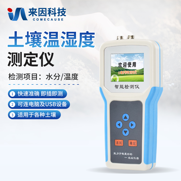 土壤多参数采用一体化结构设计,可快速准确测量土壤中含水量、温度,可对多处样地、不同土壤深度的水分含量温度进行快速检测和长期连续监测。