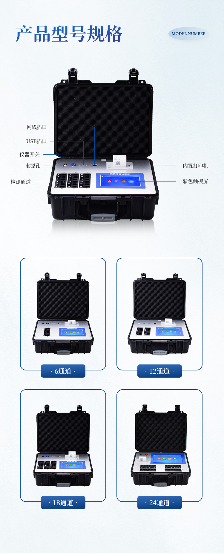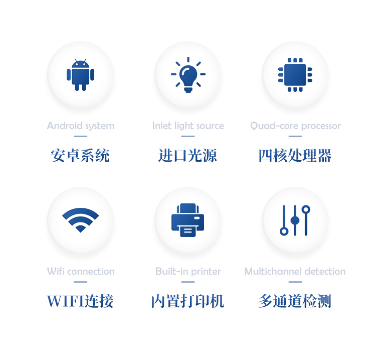 5、检测通道:6个检测通道,可以同时测试多个样品,循环检测,即放即检,每个样品由程序控制分别独立工作,不会互相干扰。