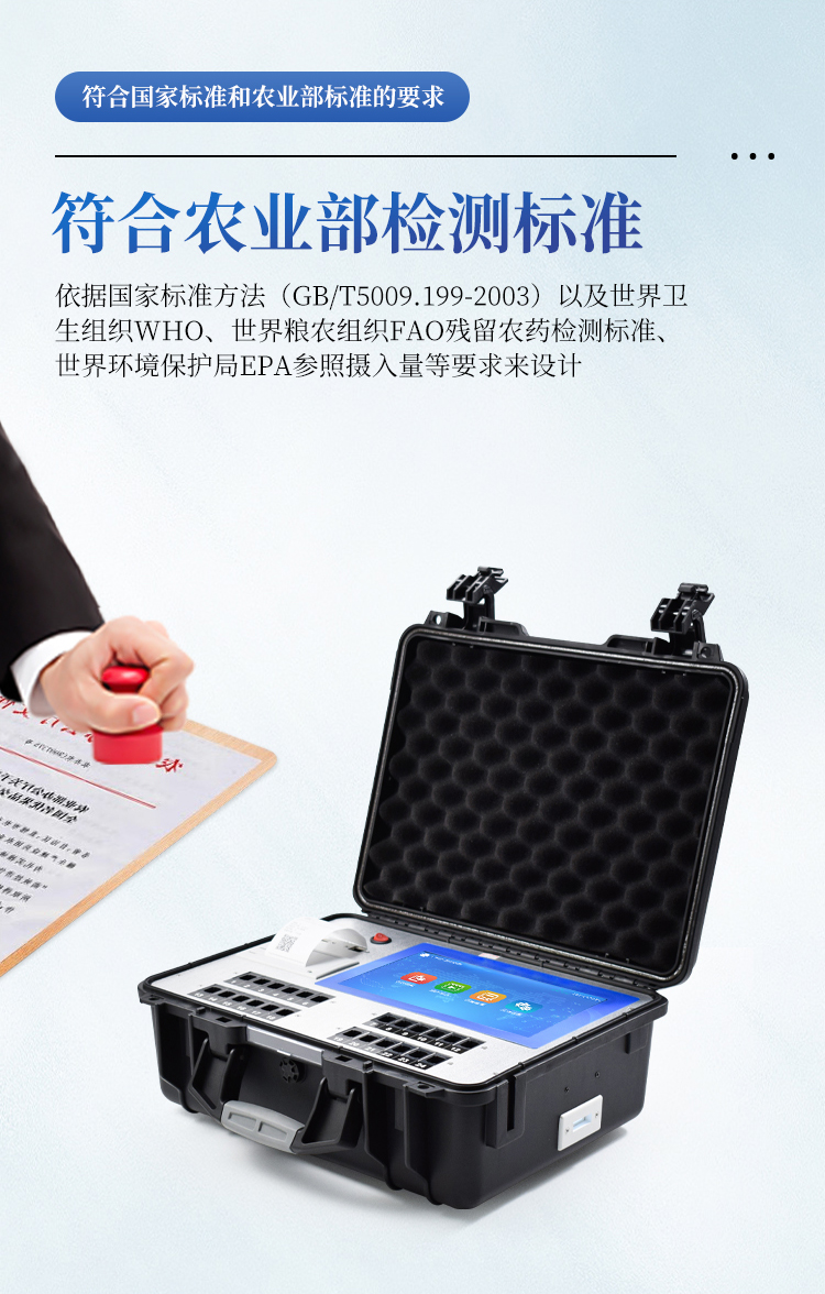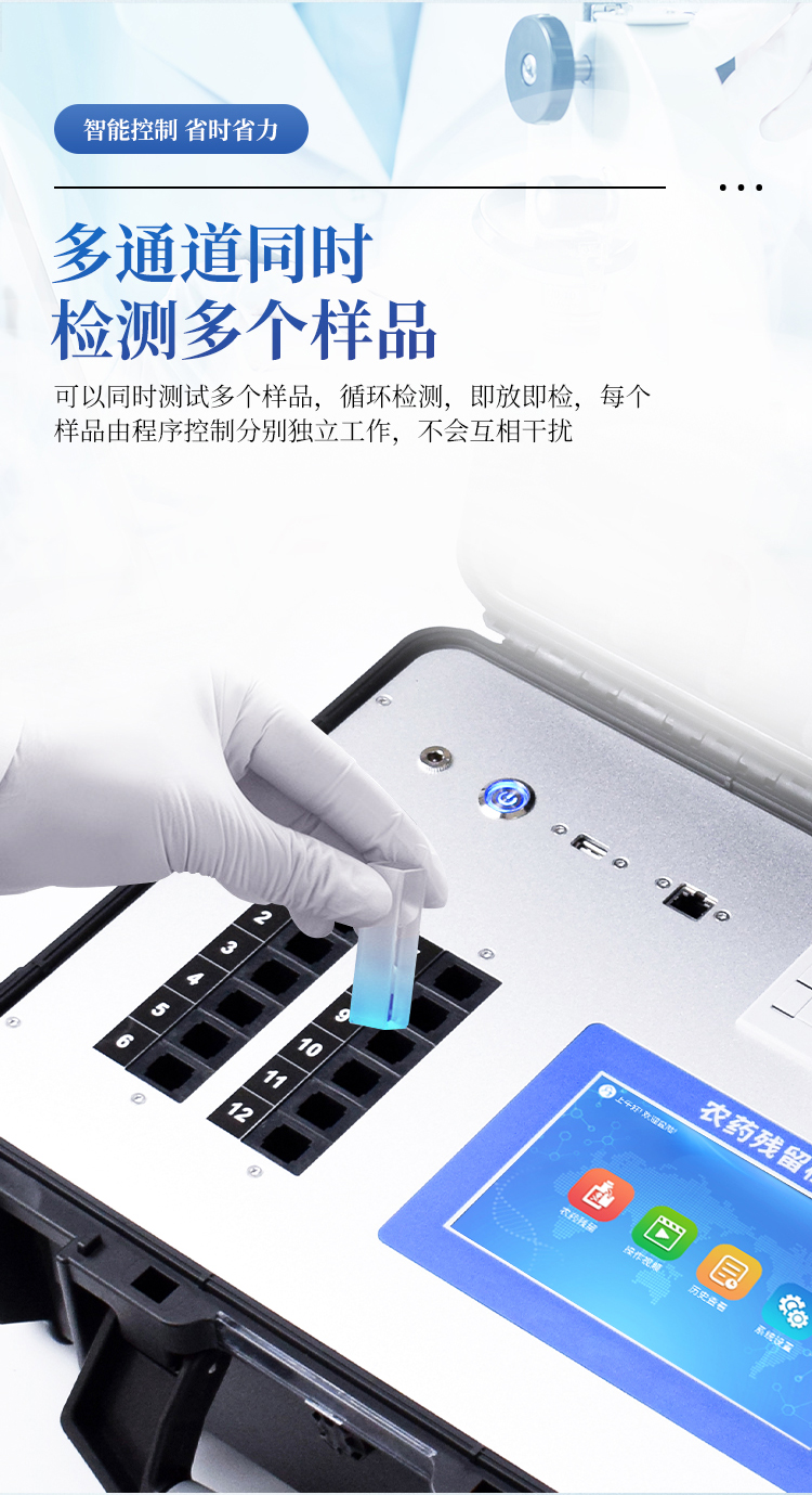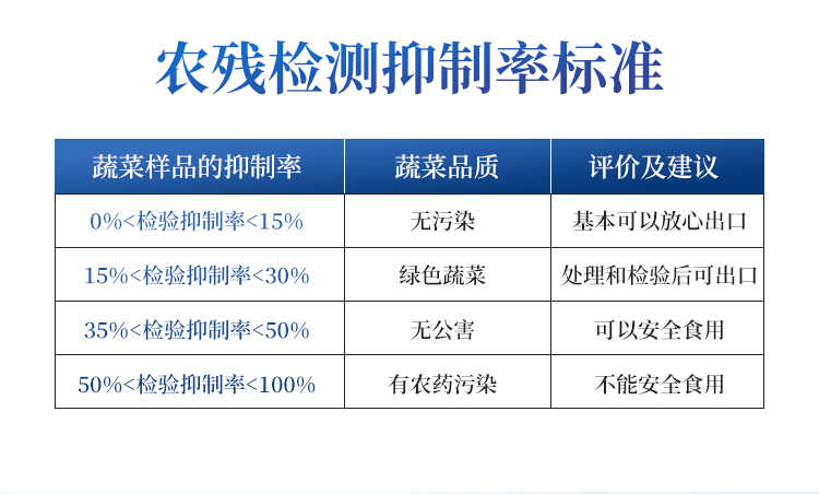 广泛应用于主要用于蔬菜、水果、茶叶、粮食、农副产品等食品中有机磷和氨基甲酸酯类农药残留的快速检测;此外还可用于果蔬茶生产基地和农贸批发销售市场现场检测,餐馆、学校、食堂、家庭果蔬加工前的安全速测等。