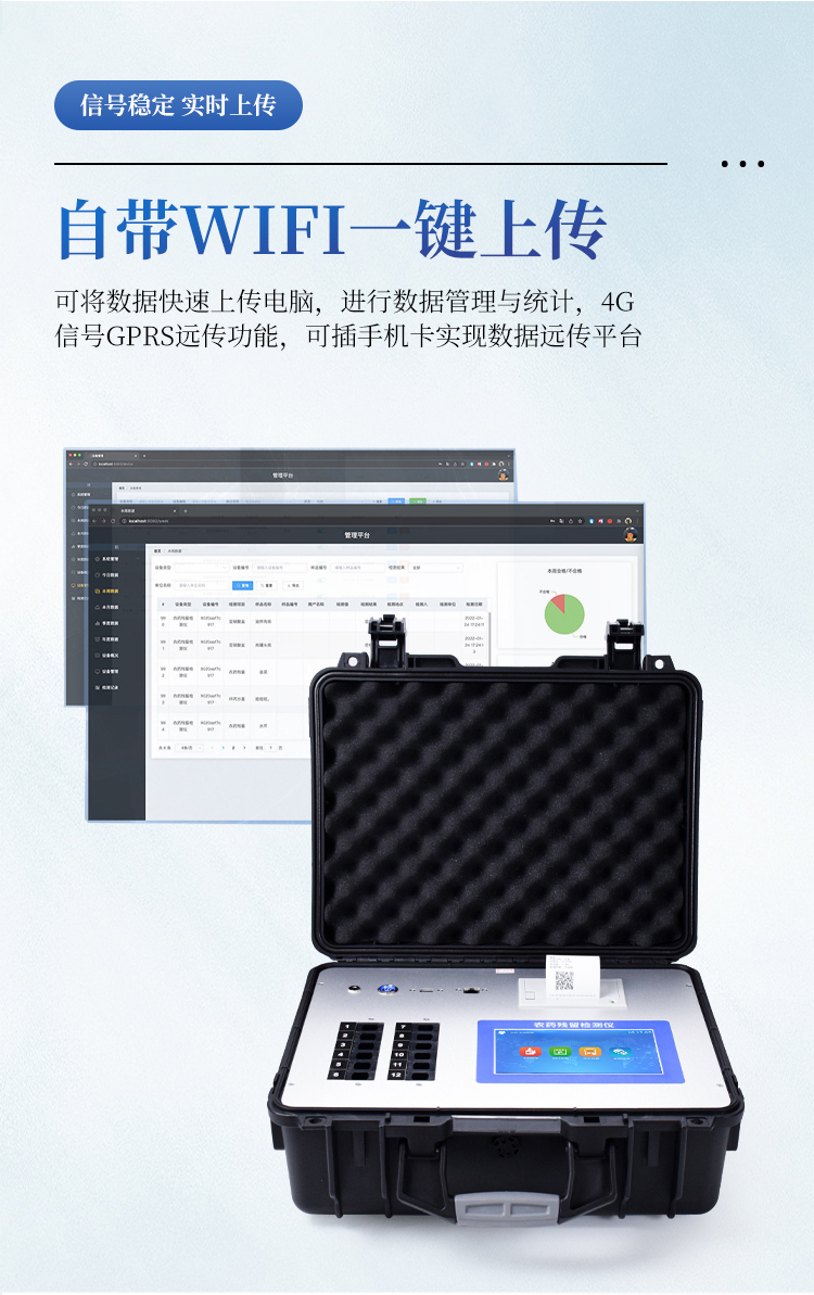 6、仪器具有wifi联网功能,可将数据快速上传电脑,进行数据管理与统计,4G信号GPRS远传功能,可插手机卡实现数据远传平台,。