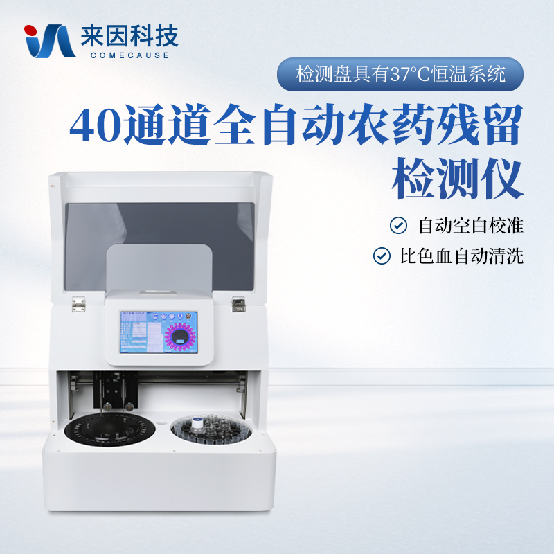 全自动农残检测仪主要用于定量分析蔬菜、水果等样本的农药残留成分。检测系统主要包括项目参数、试剂位置、仪器调校、设置、样本信息、结果查询、初始化、全盘清洗等功能模块。具有分析速度适中、无交叉污染、消耗品少、试剂开放等特点。