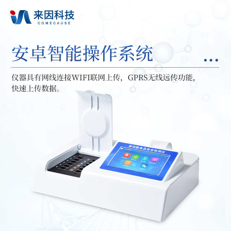该多功能食品安全检测仪为集成化食品安全快速检测分析设备,广泛应用于食药监局、卫生部门、高教院校、科研院所、农业部门、养殖场、屠宰场、食品肉产品深加工企业、检验检疫部门等单位使用。