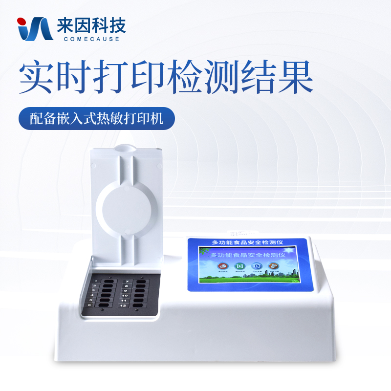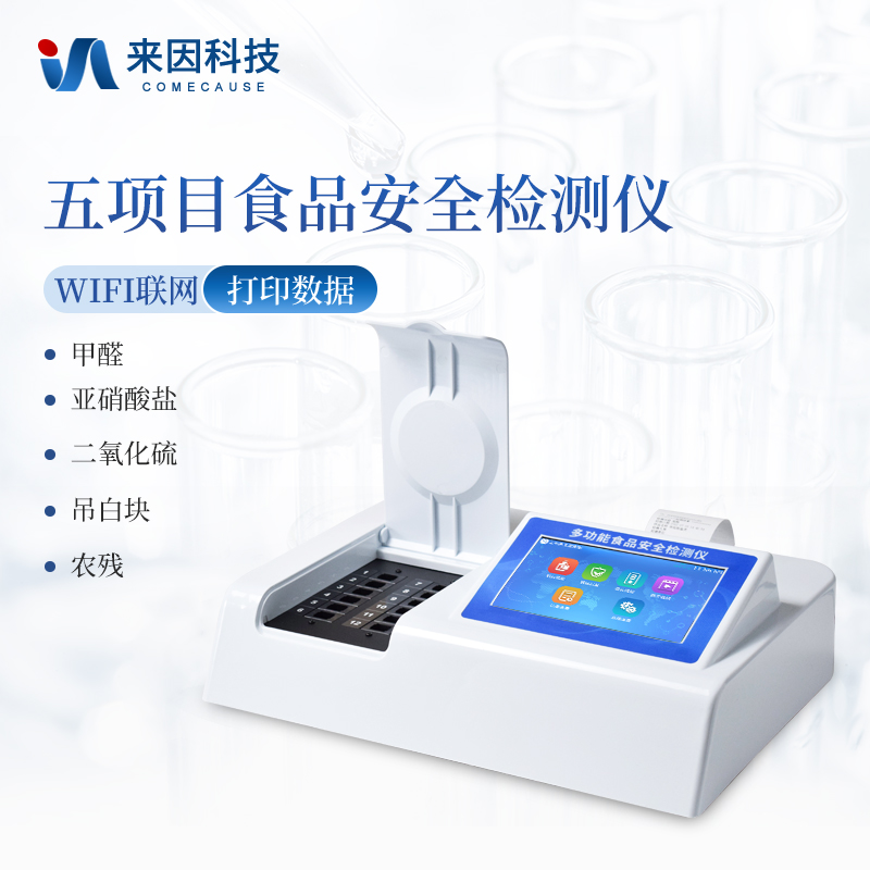 可快速检测各类食品中的甲醛、二氧化硫、亚硝酸盐、吊白块、农药残留的含量,仪器预留其他项目检测程序和端口,根据日后需求可方便的自主增加检测项目。