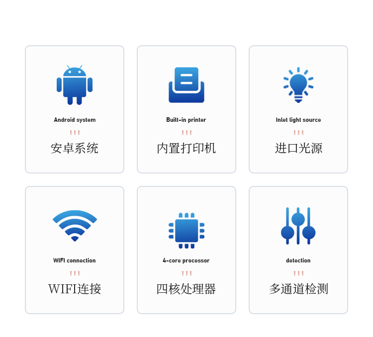 ◆多波长冷光源,并且所有检测项目可实现所有通道同时检测。