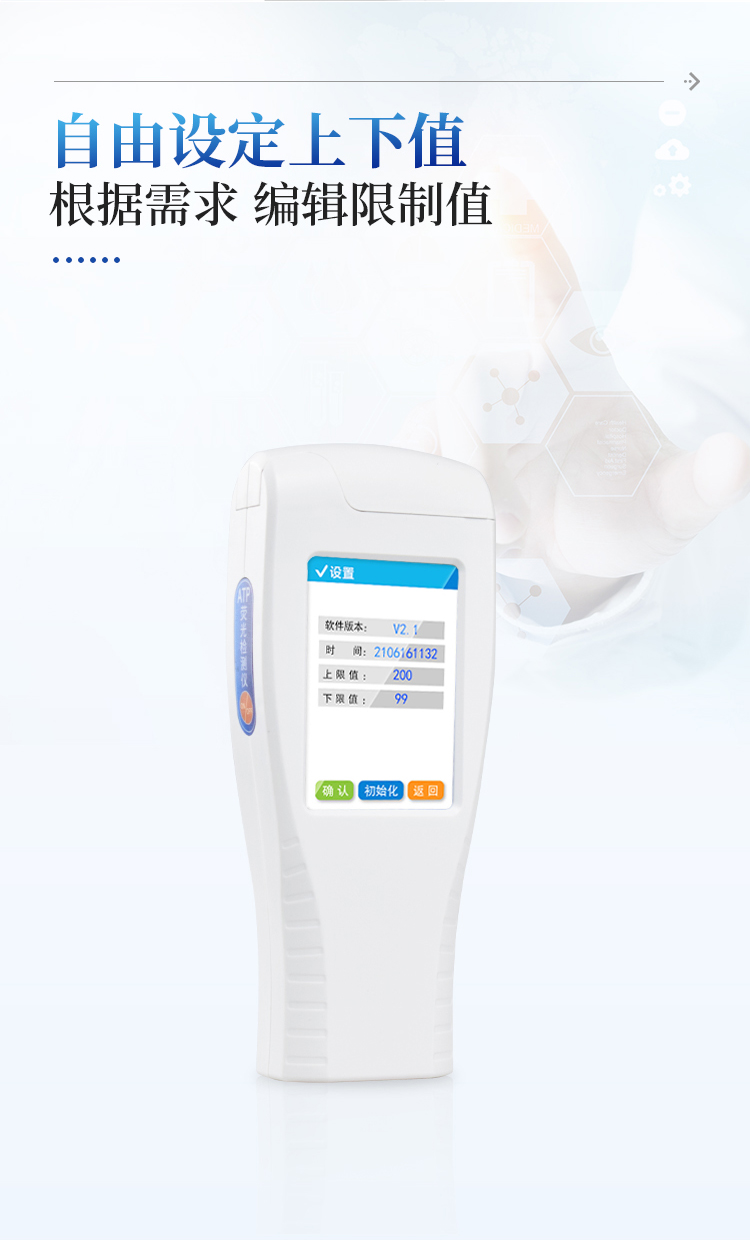 实用性 —— 可根据环境检测需求设定上下限值,做到数据快速评估预警,表面洁净度快速筛查。