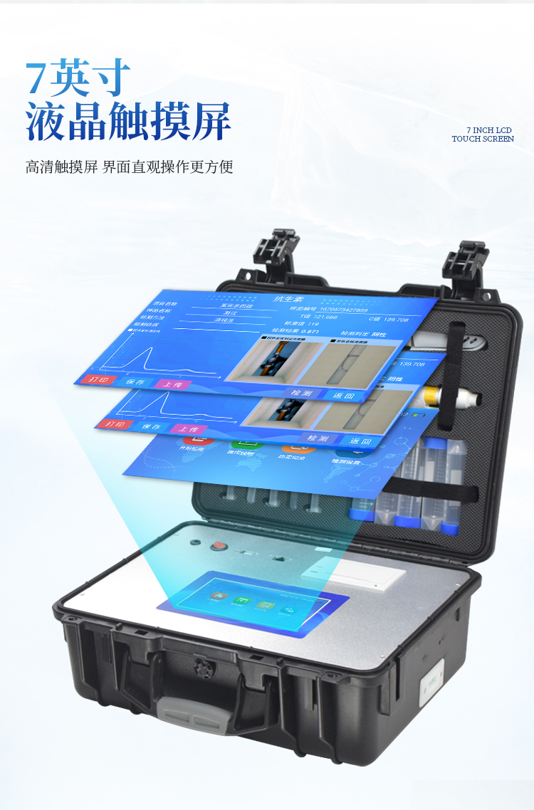 7、一体化便携式快检设备,满足现场及流动检测使用需求,能够在同一软件下实现所有检测项目的检测,并可通过同一窗口直观显示检测结果。