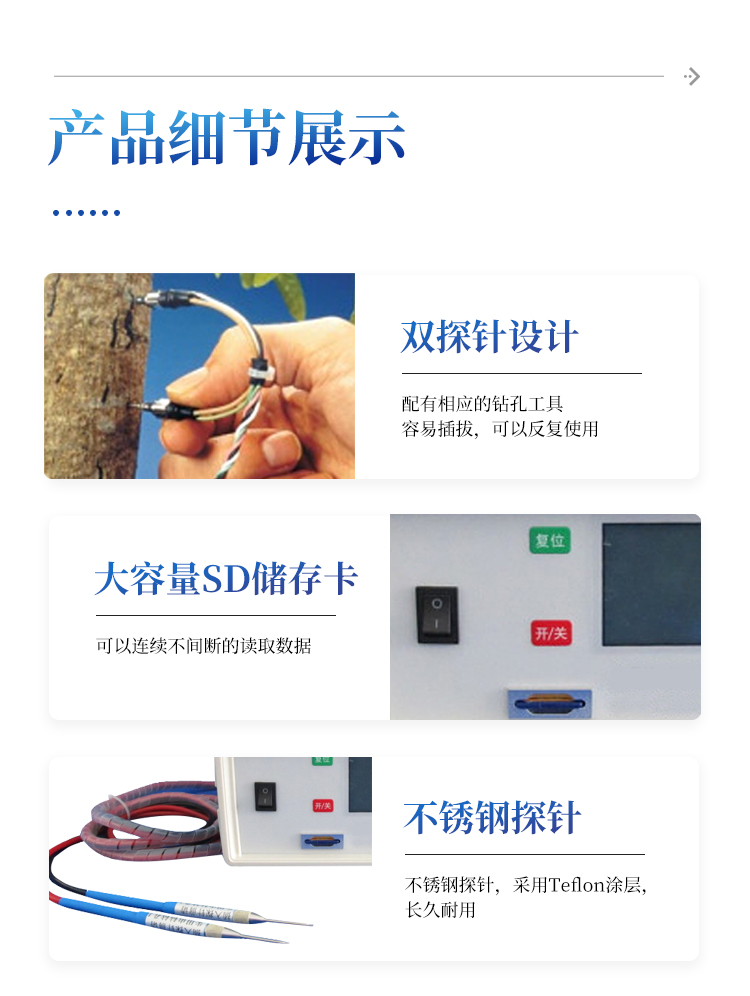 双探针,配有相应的钻孔工具,容易插拔,可以反复使用