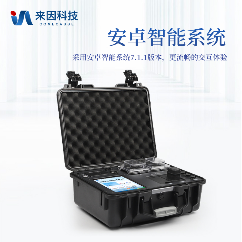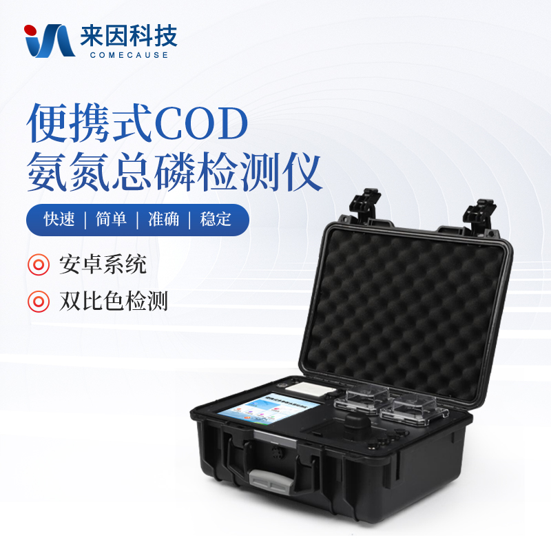 便携式COD氨氮总磷检测仪采用高强度PVC工程塑料手提箱设计,消解检测一体式设计,其中消解模块具备双温区功能,检测部分同时具备360°旋转比色管检测和比色皿检测,安卓智能操作系统,8英寸高清液晶触摸屏,光纤检测技术,进口光源,内置大容量锂电池,便携多参数水质检测仪具有性能稳定、测量准确、测定范围广、功能强大、操作简单等特点。